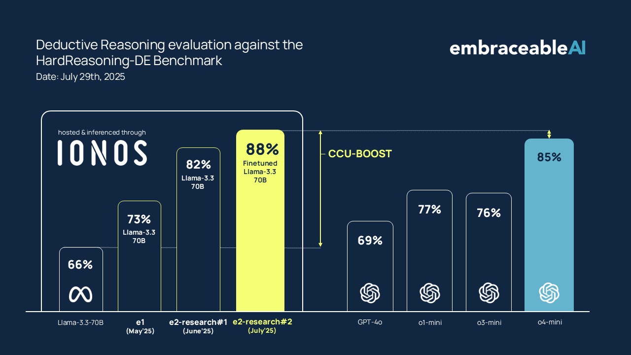 Damit belegt e2-research#2 aktuell Platz 2 im Ranking und untermauert, dass architektonische Innovation ein nachhaltiger und hocheffizienter Weg zu leistungsfähigerer KI ist.