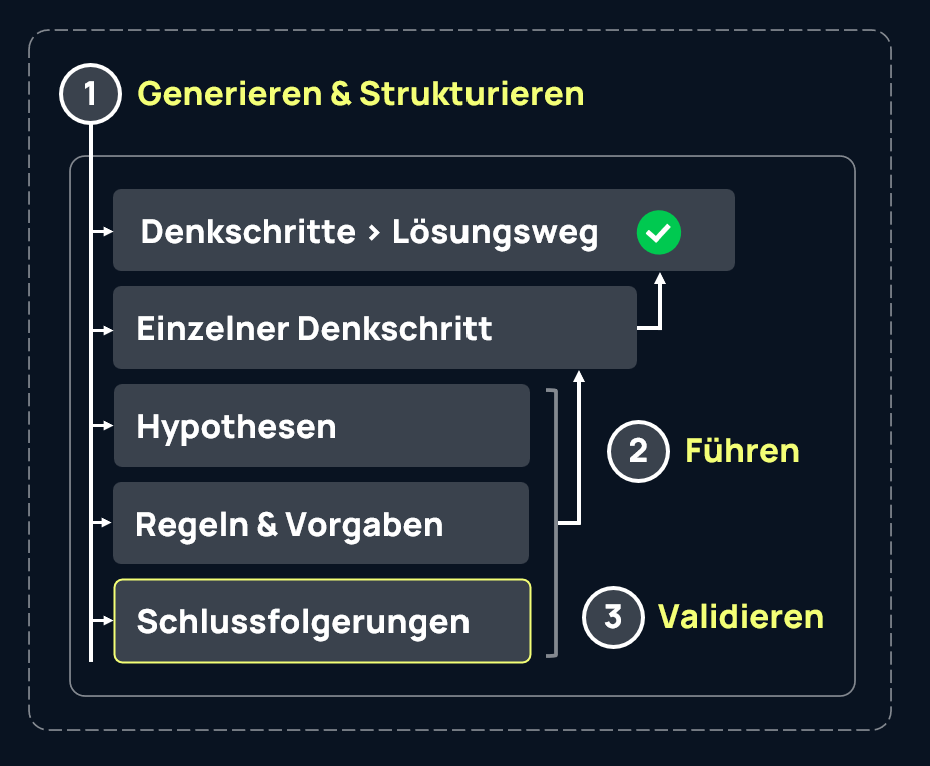Wenn KI-Modelle beginnen, strukturiert zu denken, entsteht eine neue Qualität von maschineller Intelligenz: nachvollziehbar, steuerbar, erklärbar. Anstatt auf weitere Trainings setzen wir auf strukturierte Prozesse – Schritt für Schritt, transparent und überprüfbar.